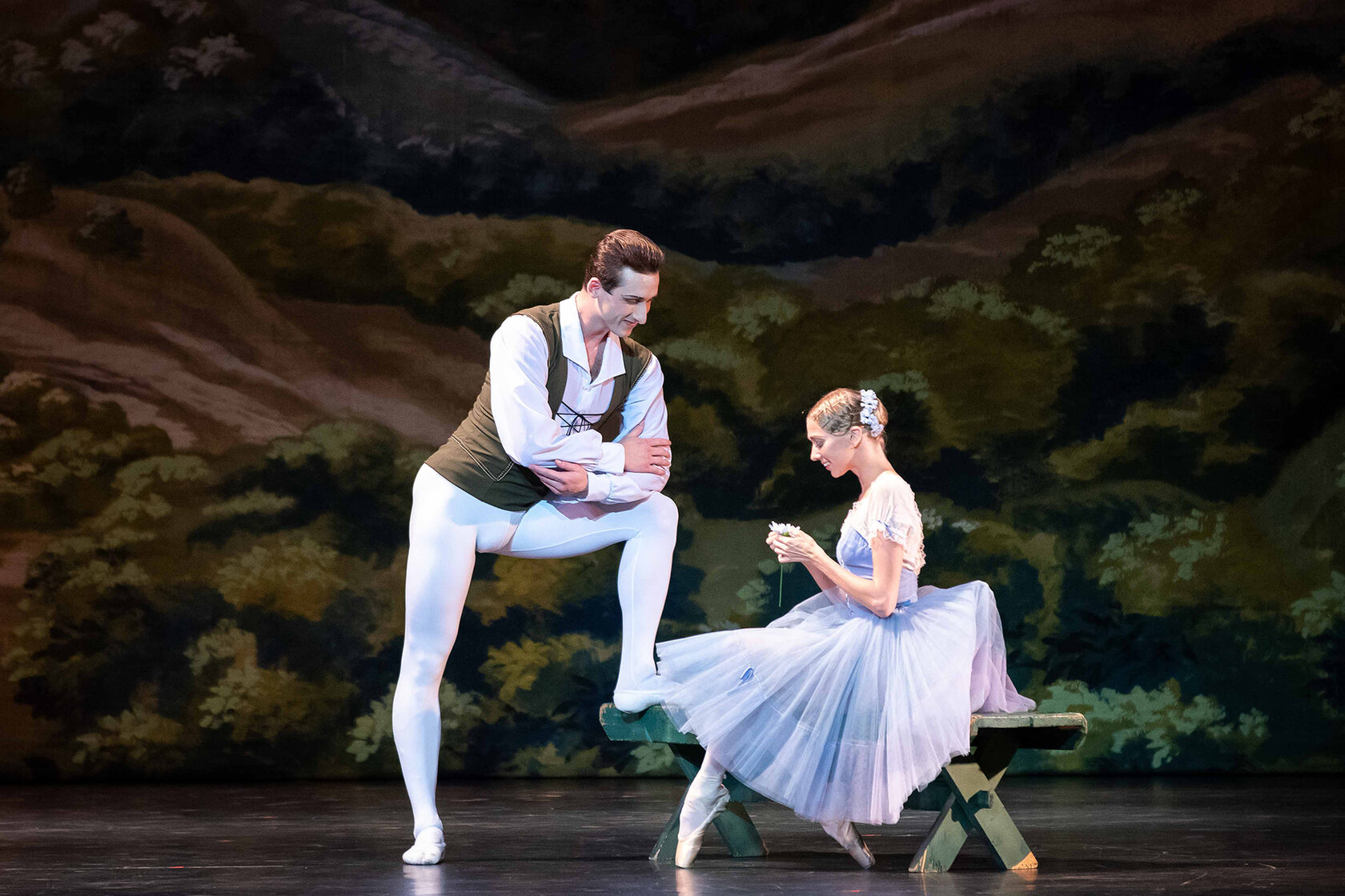 By tradition at harvest time, the villagers gather at a different house each day to taste the new wine. We find them gathered at the cottage of the peasant girl Giselle. Count Albrecht, Duke of Silesia, has fallen in love with Giselle. He disguises himself as a peasant in order to court her.